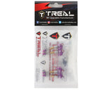 Treal Hobby Axial SCX24 Aluminum Long Travel Threaded Shocks. Constructed from high quality CNC-machined 7075 aluminum, these optional long-travel threaded shocks are intended for the Axial SCX24 and AX24 micro rock crawlers platforms to provide longer travel, smoother action and adjustability for all around better performance while adding bling and style to your rig!